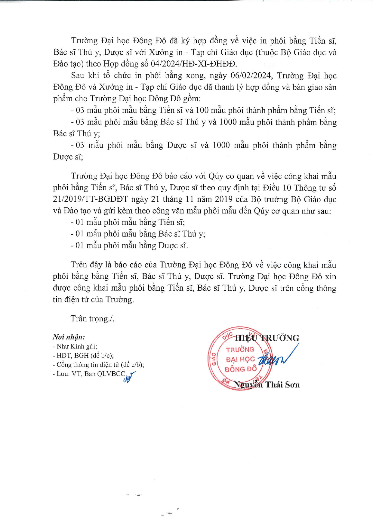 Chi tiết xem báo cáo công khai mẫu phôi bằng của Trường Đại học Đông Đô được đính kèm dưới đây.