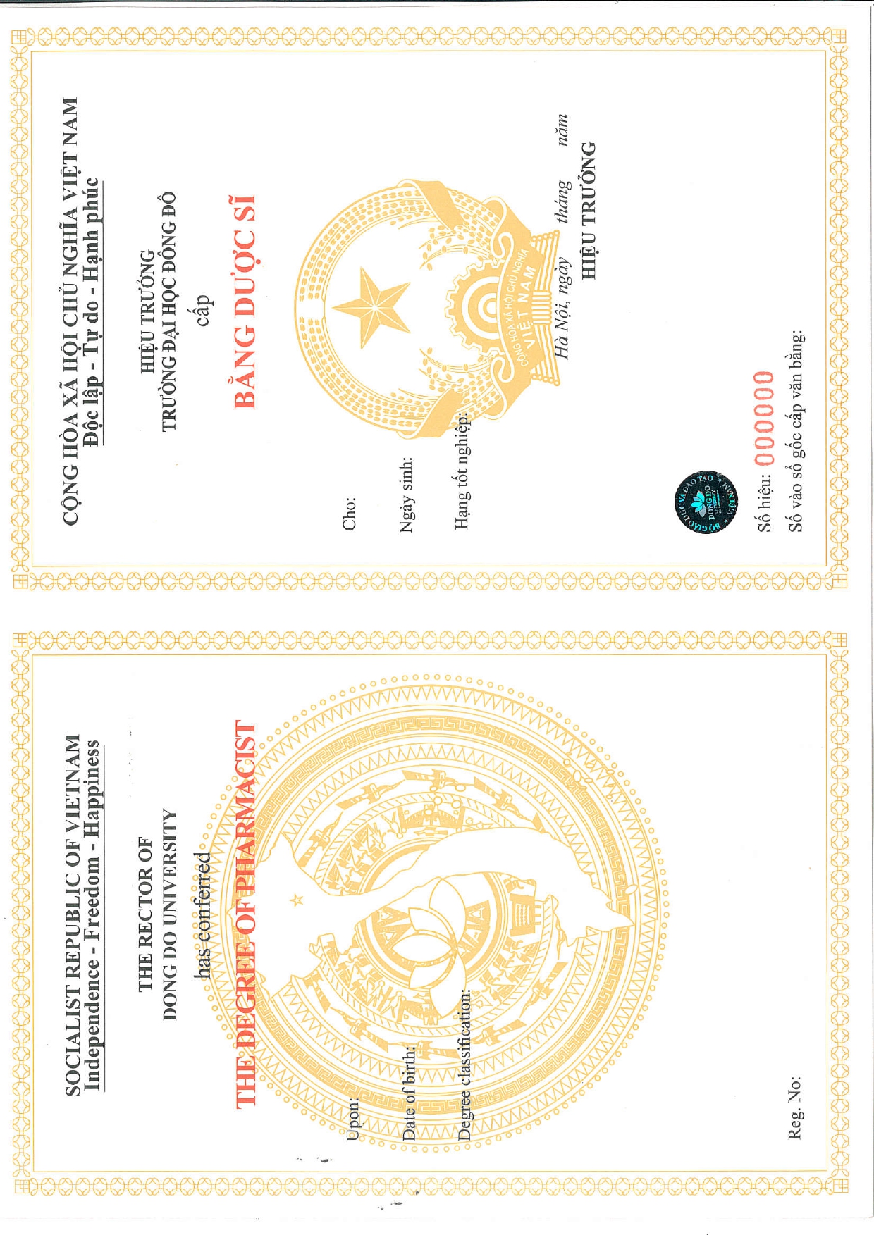 Trường Đại học Đông Đô ban hành mẫu phôi bằng Dược sĩ Đại học.