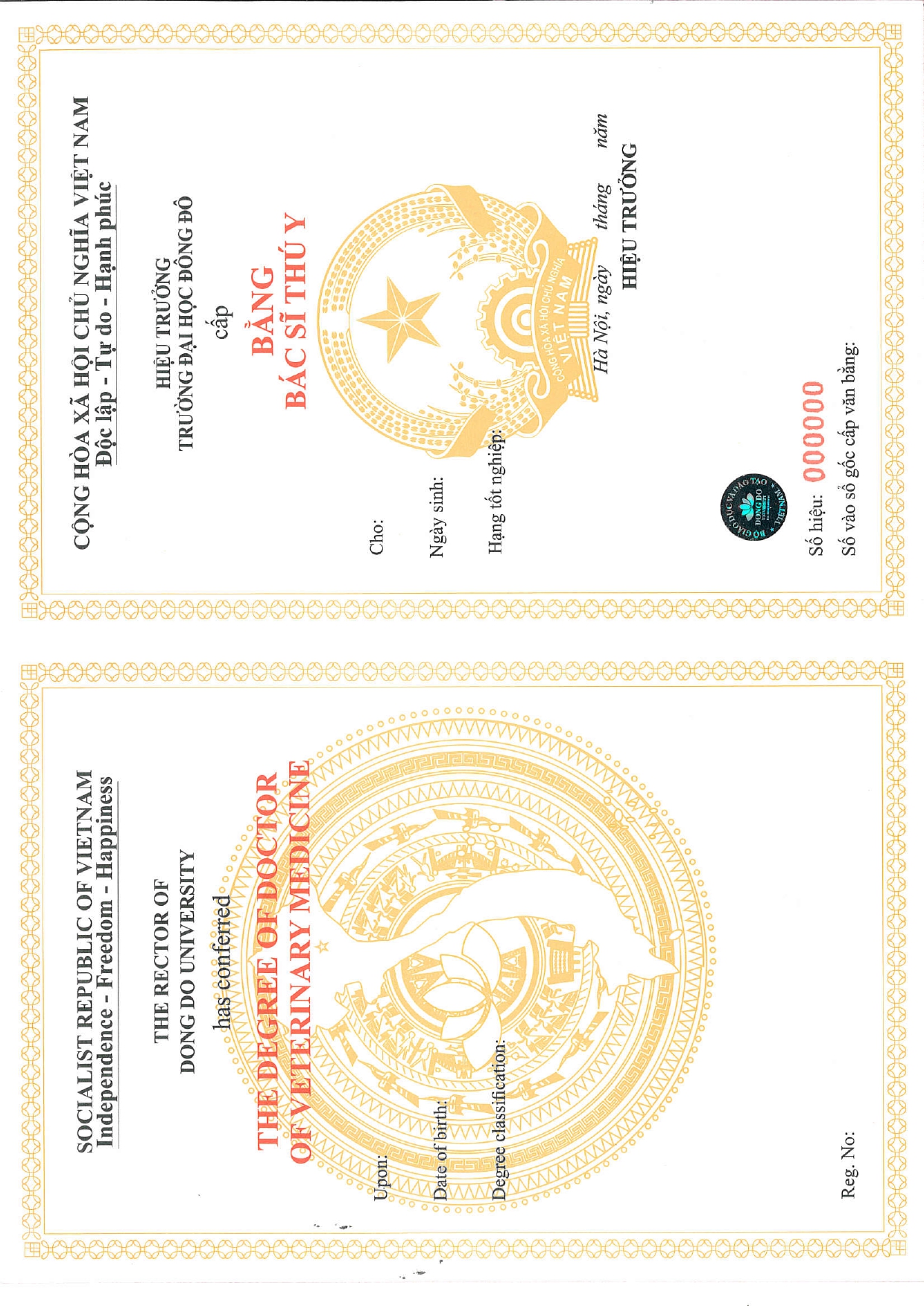 Trường Đại học Đông đô ban hành mẫu phôi bằng Bác sĩ Thú y