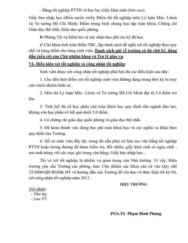 Công văn hướng dẫn thi tốt nghiệp 2015