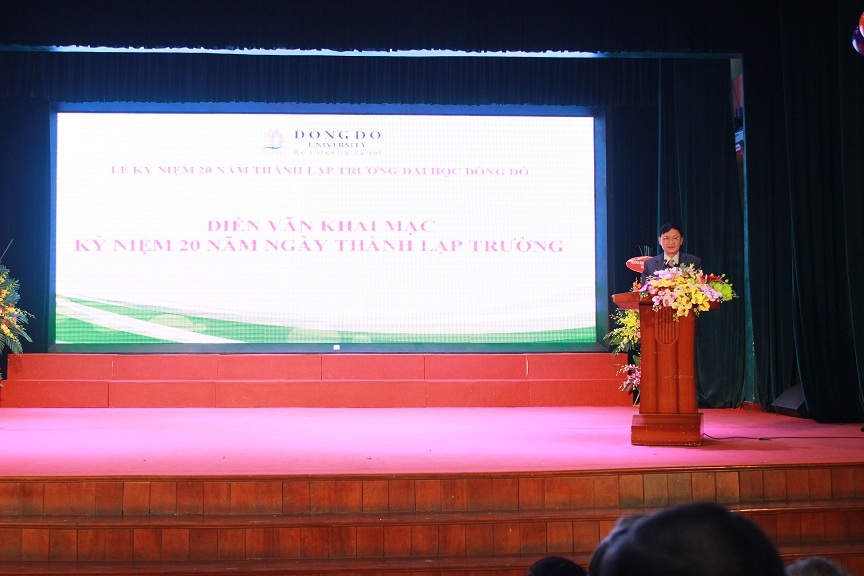 Diễn văn của thầy hiệu trưởng nhà trường, PGS.TS Phạm Đình Phùng đã giới thiệu về quá trình hình thành và phát triển cũng như những thành tựu của cả thầy và trò Đại học Đông Đô trong 20 năm vừa qua. Bên cạnh việc tập trung đầu tư vào chất lượng giảng dạy cũng như cơ sở vật chất, Trường Đại học Đông Đô còn triển khai hiệu quả nhiều chương trình hợp tác quốc tế trong và ngoài khu vực.