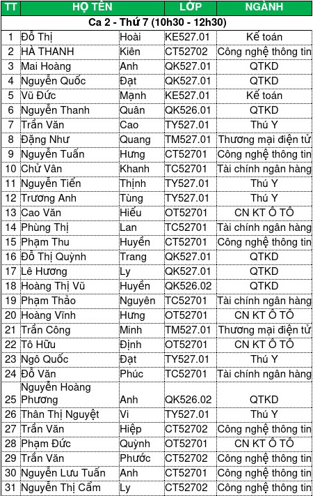 - Sinh viên có mặt trước giờ thi tối thiểu 15 phút;