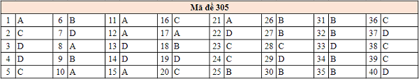 Đáp án môn Vật lý xem TẠI ĐÂY