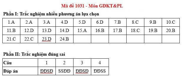 Đáp án tham khảo đề thi môn Giáo dục kinh tế và pháp luật tốt nghiệp THPT QG năm 2025 - Tất cả mã đề