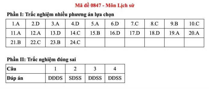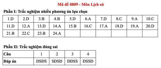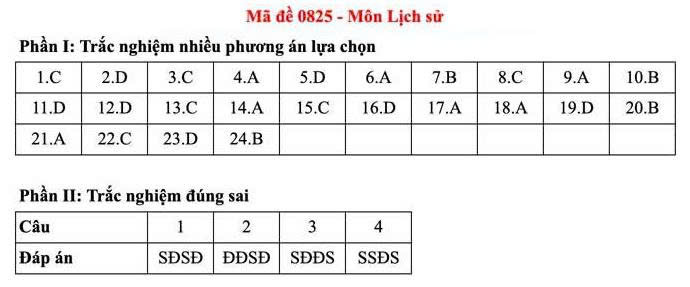 Dưới đây là đáp án tham khảo đề thi môn Lịch sử tốt nghiệp THPT QG năm 2025 - Tất cả mã đề KHÔNG phải đáp án chính xác bởi Bộ GD&ĐT: