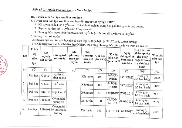 Thông báo tuyển sinh Vừa làm - Vừa học