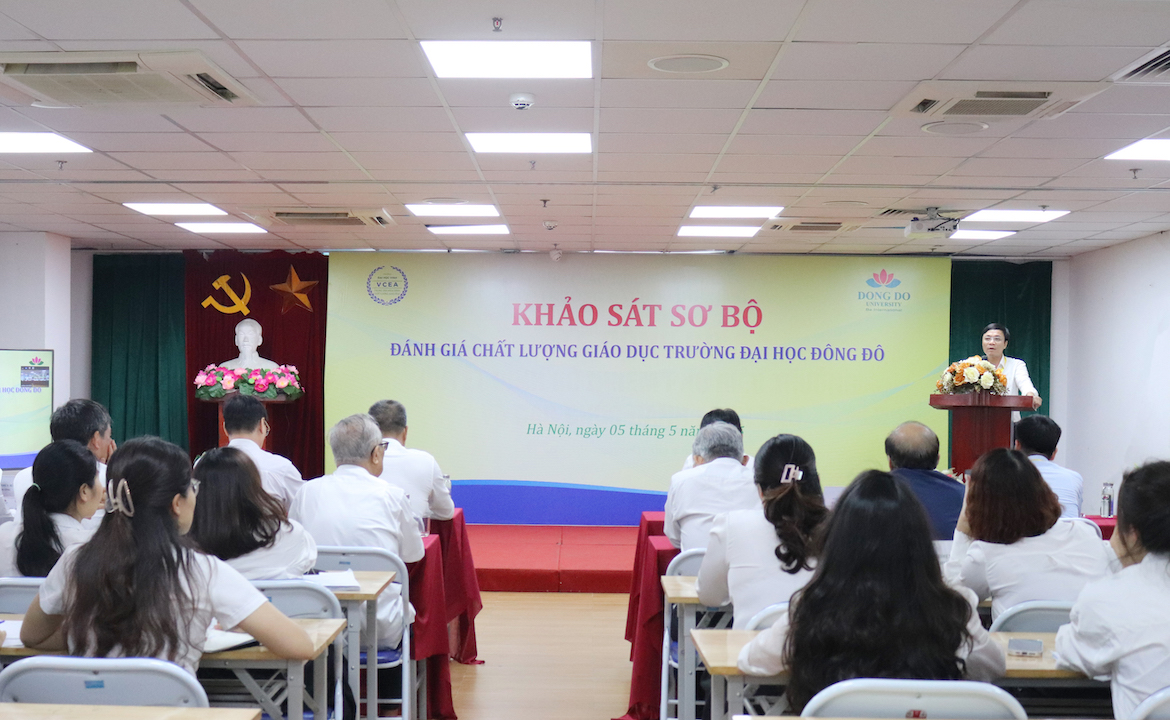 Ngày 5/5/2025, Trung tâm Kiểm định chất lượng giáo dục Trường Đại học Vinh (KĐCLGD Trường Đại học Vinh - VCEA) và Đoàn chuyên gia đánh giá ngoài (ĐGN) đã tiến hành khảo sát sơ bộ tại Trường Đại học Đông Đô, chuẩn bị cho đợt khảo sát chính thức theo quy trình kiểm định chất lượng giáo dục của Bộ Giáo dục và Đào tạo. Đây là một bước đi quan trọng trong tiến trình kiểm định chất lượng nhằm hướng tới sự phát triển bền vững và nâng cao chất lượng giáo dục toàn diện của Nhà trường.