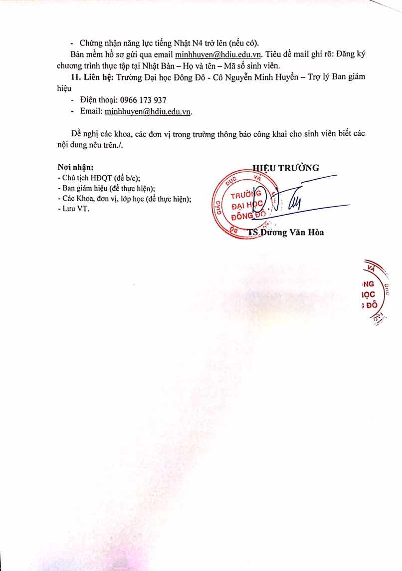 Bản mềm hồ sơ gửi qua email minhhuyen@hdiu.edu.vn. Tiêu đề mail ghi rõ: Đăng ký chương trình thực tập tại Nhật Bản – Họ và tên – Mã số sinh viên.