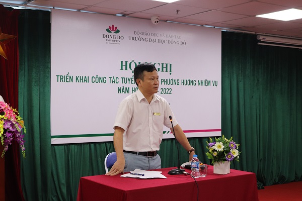 Tại Hội nghị, đồng chí Phạm Ngọc Đóa triển khai chi tiết chủ trương tuyển sinh các hệ Đại học, sau Đại học và phương hướng nhiệm vụ năm học 2021 - 2022 của Trường Đại học Đông Đô. Đồng thời, động viên, giao nhiệm vụ và đề nghị các Phòng Ban, Trung tâm, Viện cùng các đơn vị liên quan căn cứ theo chức năng nhiệm vụ của mình tập trung phối hợp tích cực trong công tác tuyển sinh năm học 2021 - 2022.