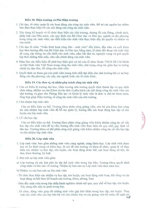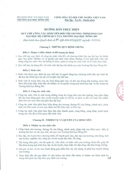 Hướng dẫn thực hiện quy chế công tác sinh viên đối với chương trình đào tạo Đại học chính quy