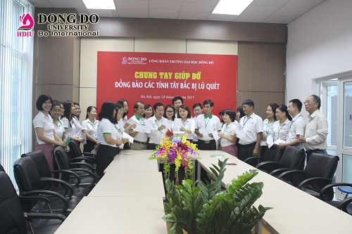 Chung tay cùng nhân dân cả nước hỗ trợ đồng bào các tỉnh miền núi phía Bắc đang bị ảnh hưởng bởi thiên tai, Công đoàn trường Đại học Đông Đô đã phát động chương trình quyên góp đến toàn thể đoàn viên công đoàn. Ngày 18-8, TS. Dương Văn Hòa - Hiệu trưởng nhà trường, cô Phan Quỳnh Mai – Chủ tịch Công đoàn trường cùng toàn thể cán bộ, giảng viên trường Đại học Đông Đô đã dành mỗi người ít nhất 1 ngày lương để ủng hộ, góp phần giúp đỡ nhân dân vùng lũ sớm khắc phục hậu quả thiên tai, dần khôi phục sản xuất và ổn định cuộc sống.