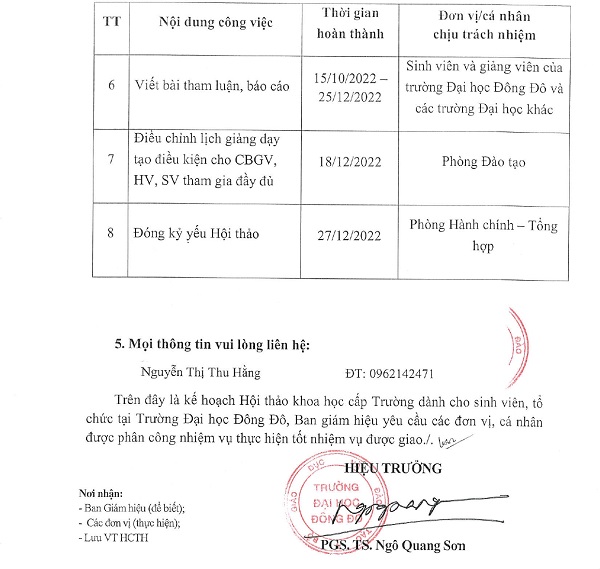 Kế hoạch tổ chức Hội thảo Khoa học cấp Trường dành cho sinh viên