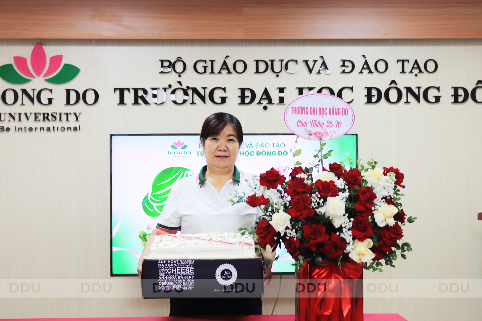 Trong không khí vui tươi, Đảng Ủy cùng Ban Giám hiệu đã trao tặng những bó hoa tươi thắm đến các nữ cán bộ, giảng viên và sinh viên – thay cho lời cảm ơn chân thành, thể hiện sự trân trọng dành cho “một nửa yêu thương” của đại gia đình Đông Đô.