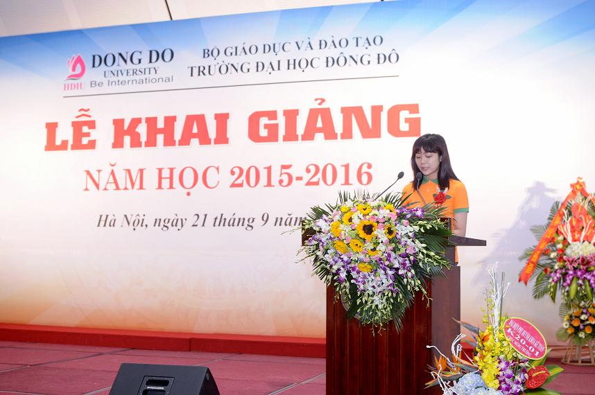 Năm học 2015 – 2016, trường Đại học Đông chào mừng hơn 500 tân sinh viên khóa 20, ai cũng vô cùng hào hứng và phấn khởi trong buổi lễ khai giảng. Tại buổi lễ, bạn Nguyễn Thị Hồng Hạnh – tân sinh viên khoa Quan hệ quốc tế thay mặt tân sinh viên khóa 20 bày tỏ sự vui mừng của mình khi lựa chọn nhập học tại Đại học Đông Đô. Hồng Hạnh cho biết dù mới học được một thời gian ngắn, nhưng sự tận tình từ phía các thầy cô và sự đầy đủ về cơ sở vật chất khiến cho các tân sinh viên vô cùng thoải mái và hài lòng.