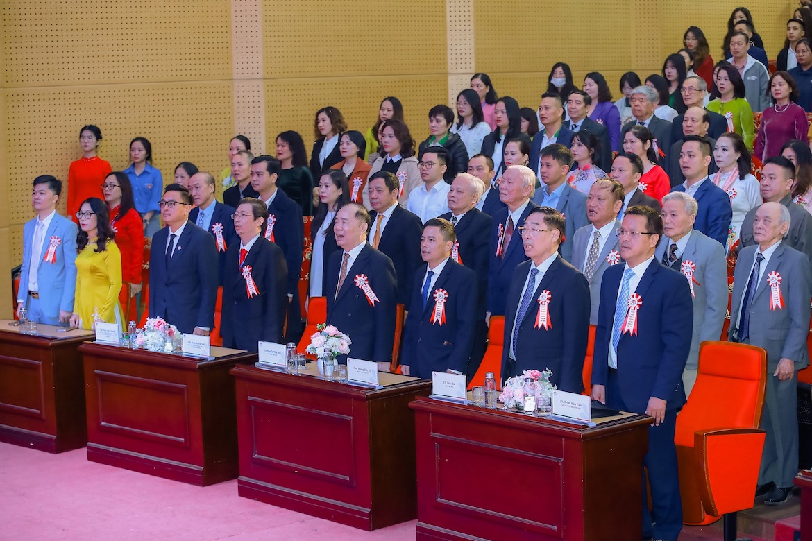 Toàn thể hội trường thực hiện nghi lễ chào cờ