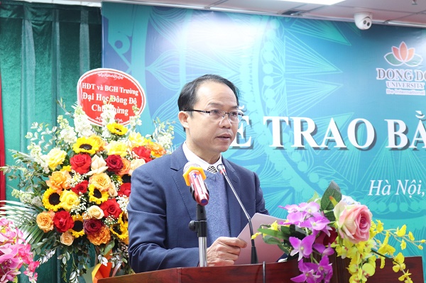 Tiếp đó, ông Hoàng Văn Thảo – Phó phụ trách Phòng Khảo thí, Thanh tra & ĐBCL công bố Quyết định công nhận tốt nghiệp. Đây là cột mốc quan trọng đánh dấu sự trưởng thành của các tân Thạc sĩ sau quá trình miệt mài học tập và nghiên cứu dưới sự dìu dắt của các giảng viên tại trường Đại học Đông Đô.