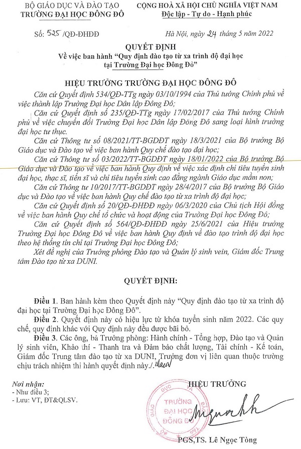 Quy định đào tạo từ xa trình độ đại học tại Trường Đại học Đông Đô