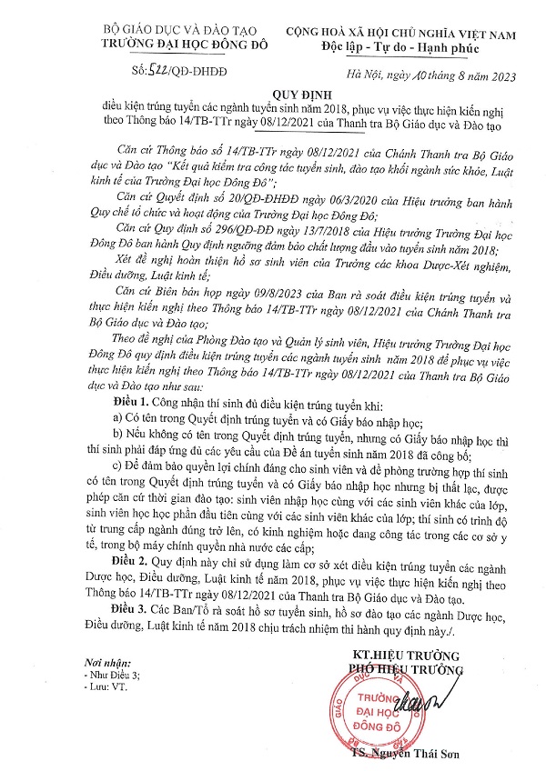 Quy định điều kiện trúng tuyển các ngành tuyển sinh năm 2018