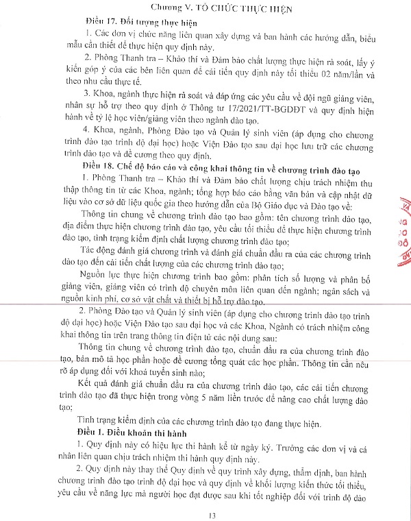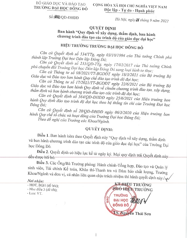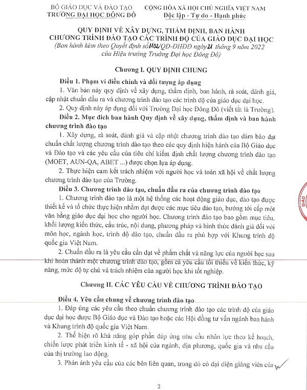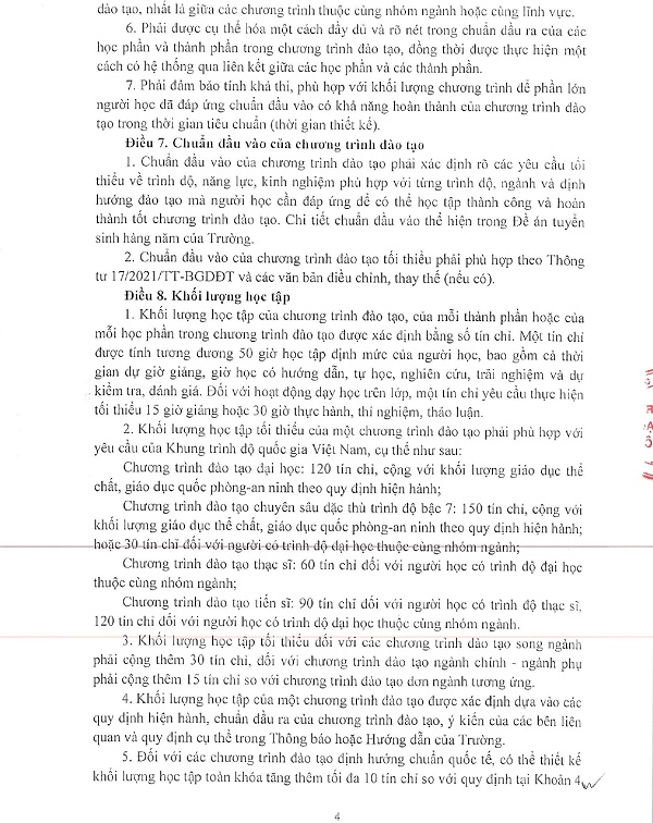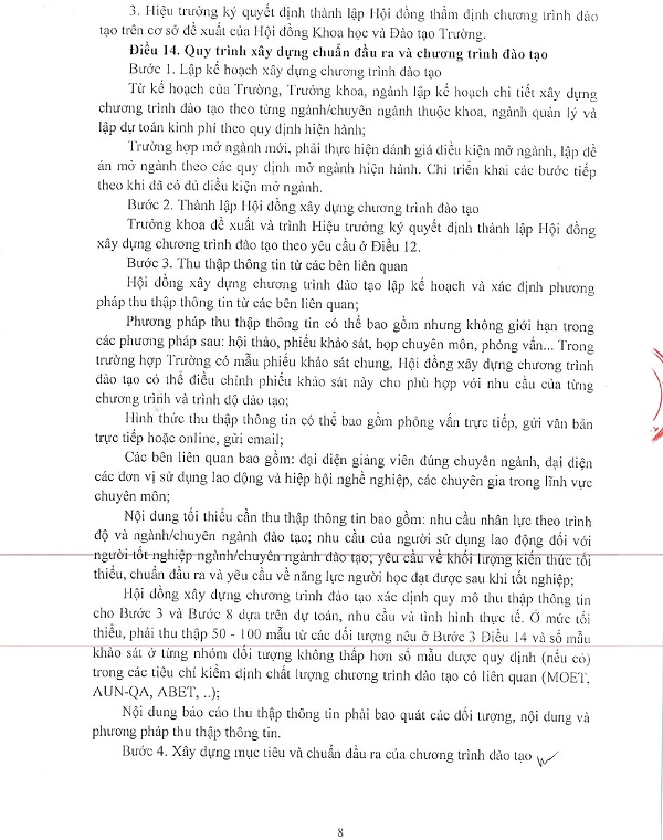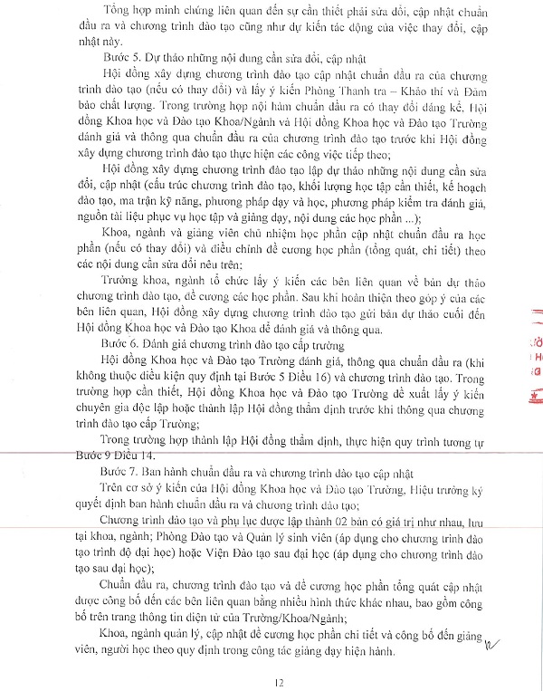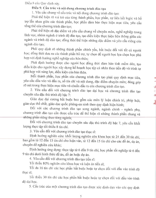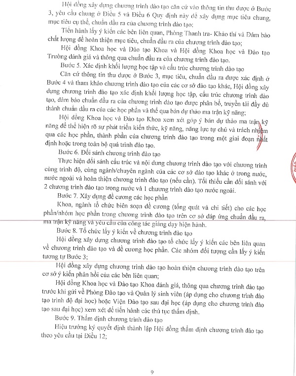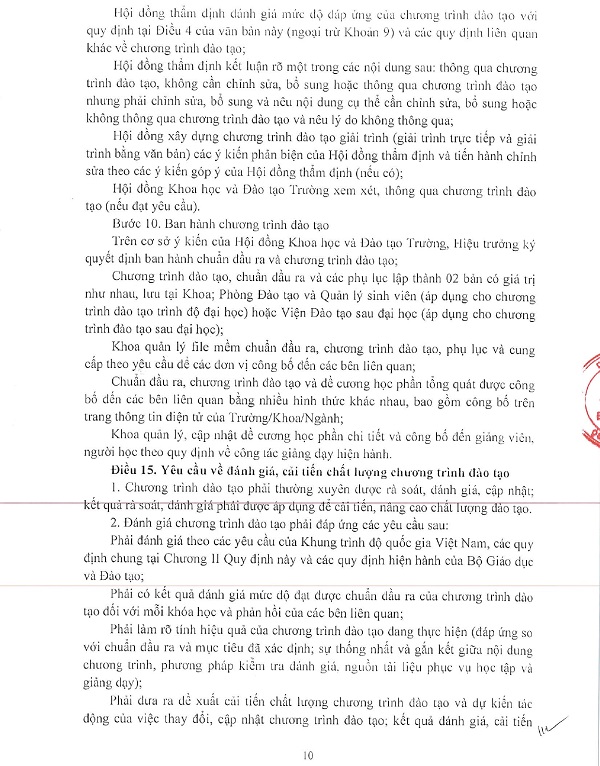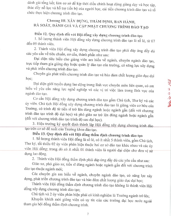 Quy định về xây dựng, thẩm định, ban hành chương trình đào tạo các trình độ của giáo dục đại học