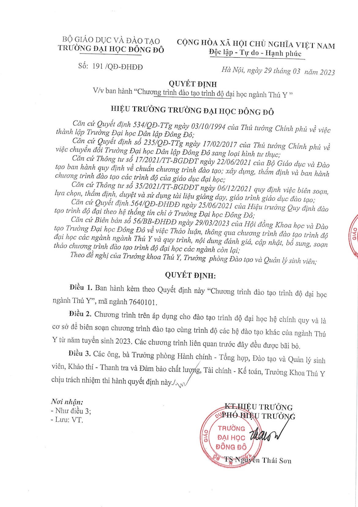 Quyết định ban hành "Chương trình đào tạo trình độ đại học ngành Thú Y"