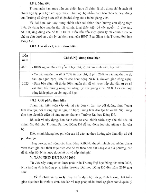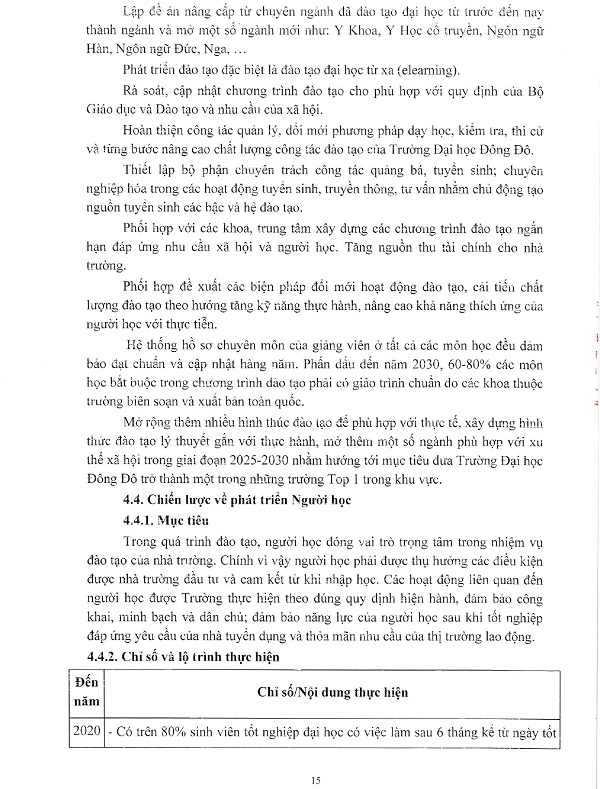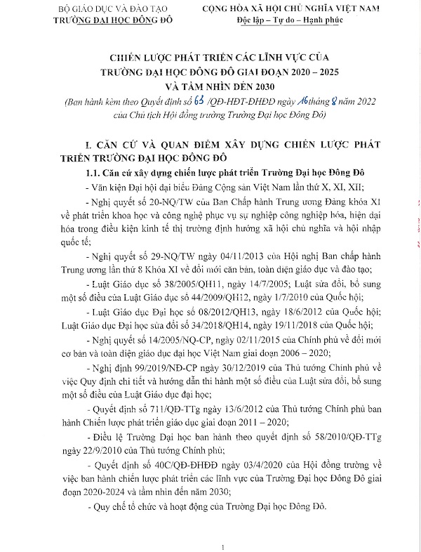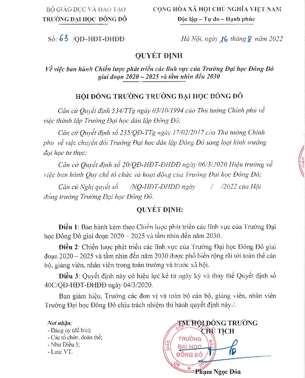 Quyết định về việc chiến lược phát triển các lĩnh vực của trường Đại học Đông Đô giai đoạn 2020-2025 và tầm nhìn đến năm 2030