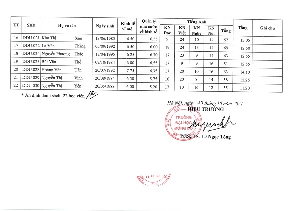 Quyết định về việc công nhận thí sinh trúng tuyển kỳ thi tuyển sinh Cao học đợt 1 năm 2021