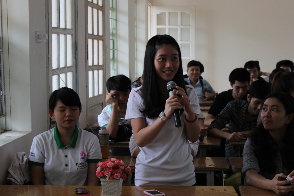 Buổi nói chuyện còn có sự tham gia của TS. Nguyễn Thị Mỹ - trưởng khoa Quan hệ Quốc tế, Ts. Trịnh Hữu Tuấn - Phó khoa Ngoại ngữ và các thầy cô giáo trong khoa Quan hệ Quốc tế và khoa Quản trị kinh doanh. Đặc biệt, chương trình còn có sự tham gia của cô Harriet Emma – giảng viên người Anh đầu tiên tại trường đại học Đông Đô.