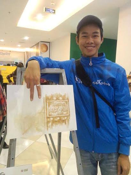 Nguyễn Minh Tùng bên cạnh tác phẩm “Long Biên 2” của mình