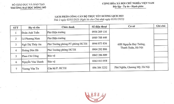Thông báo lịch nghỉ Tết Dương lịch 2023