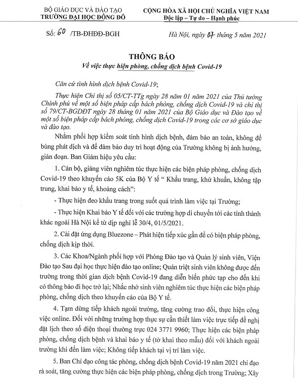 Thông báo về việc tăng cường thực hiện phòng, chống dịch covid-19