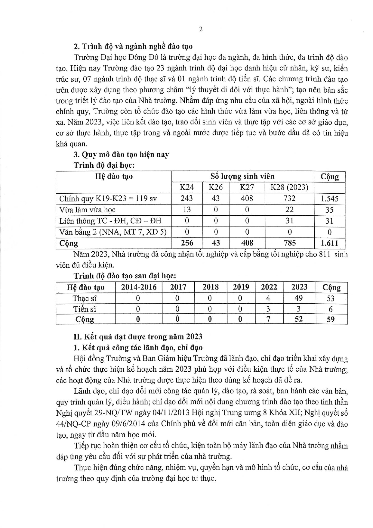 Trường Đại học Đông Đô thực hiện báo cáo tổng kết năm 2023 và phương hướng nhiệm vụ năm 2024. Qúy thầy cô và các cán bộ nhận viên trong Nhà trường theo dõi và thực hiện.