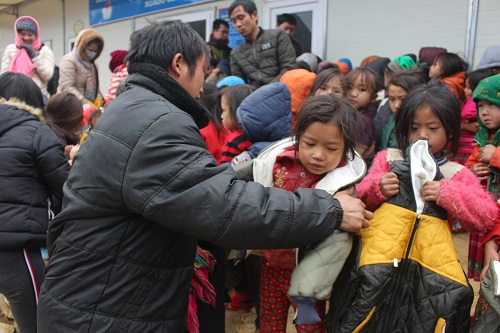 Không muốn để các em chờ lâu trong gió rét, đoàn từ thiện nhanh chóng phân chia bánh kẹo, áo khoác mới và một số quần áo cũ mùa đông cho các em học sinh và cả bà con trong vùng. Những phần quà ấy tuy không nhiều, nhưng sẽ phần nào giúp các em bớt đi thiếu thốn, khó khăn và đẩy lui giá buốt vùng cao.