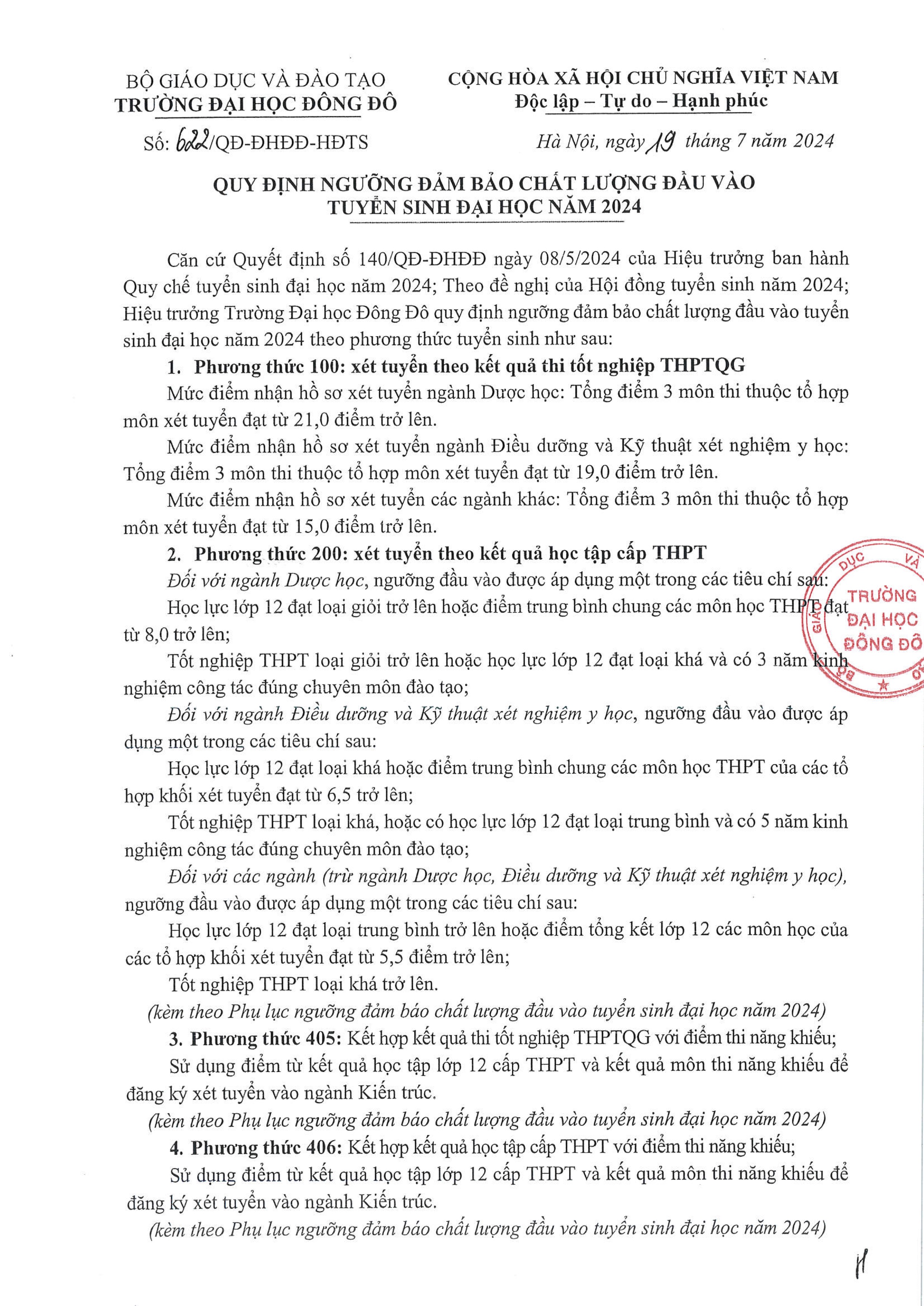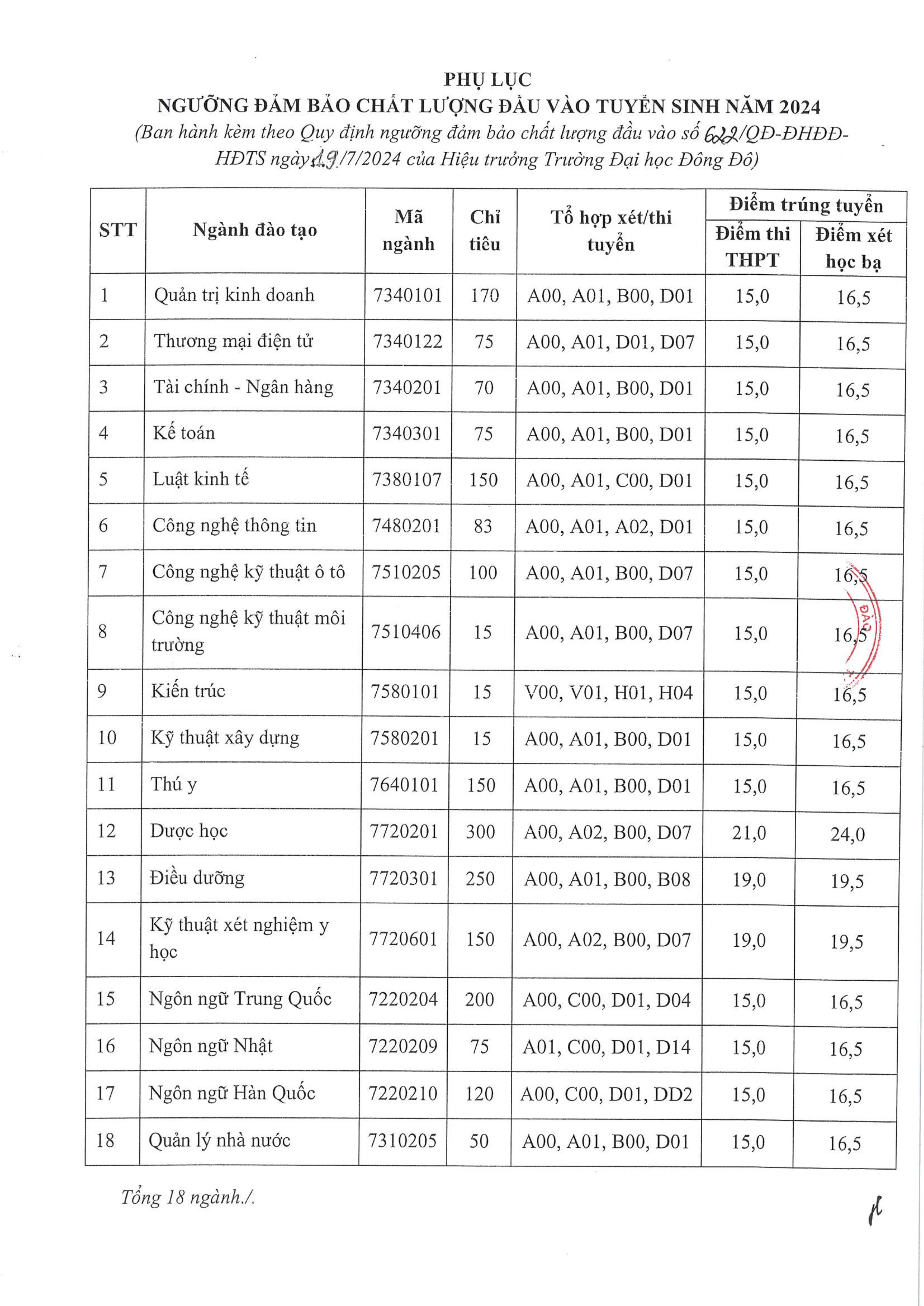 Công bố điểm chuẩn trúng tuyển hệ Đại học Chính quy năm 2024