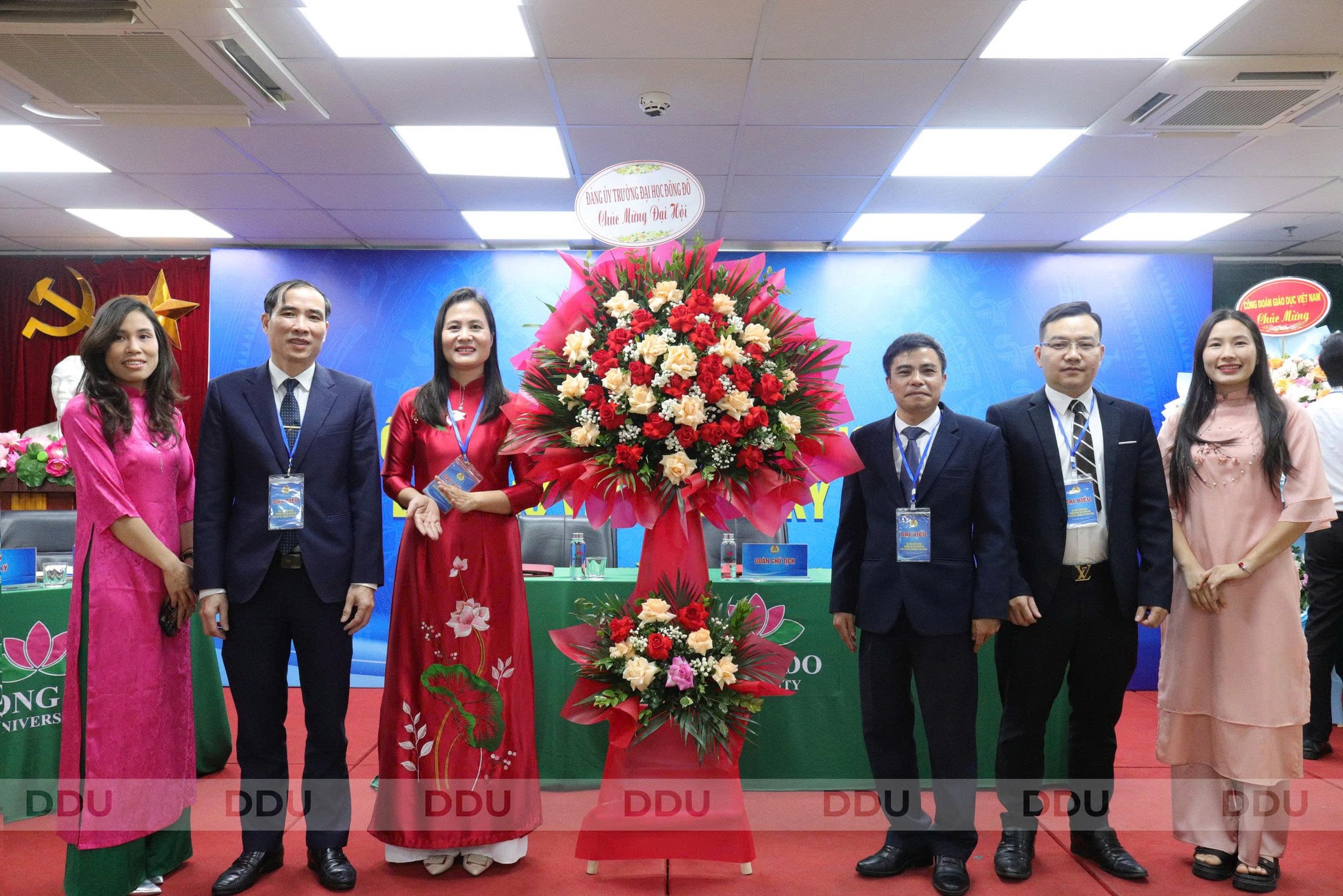 Về phía Nhà trường có TS. Nguyễn Anh Tuấn - Hiệu trưởng Nhà trường; ThS. Nguyễn Thế Sơn - Phó Chủ tịch HĐT, Phó Hiệu trưởng Nhà trường; TS. Nguyễn Đình Tân - Phó Hiệu trưởng Nhà trường; ThS. Trần Khắc Hưng - Phó Hiệu trưởng Nhà trường; ThS. Hoàng Đức Hà - Phó Bí thư Đảng ủy Nhà trường; ThS. Vương Thị Hà - Chủ tịch Công đoàn Trường. Cùng tham dự là các đại biểu đại diện cho Đoàn Thanh niên, Hội cựu chiến binh, các lãnh đạo phòng ban, viện, trung tâm và 68 công đoàn viên Trường Đại học Đông Đô.