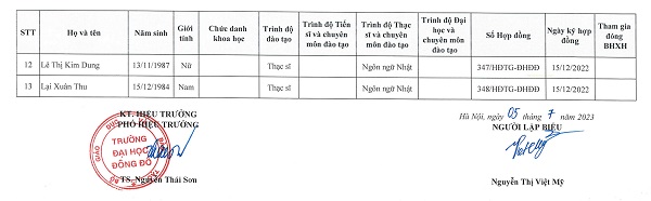 Danh sách Giảng viên cơ hữu ngành Ngôn ngữ Nhật