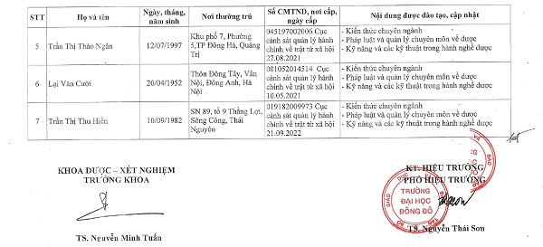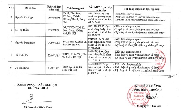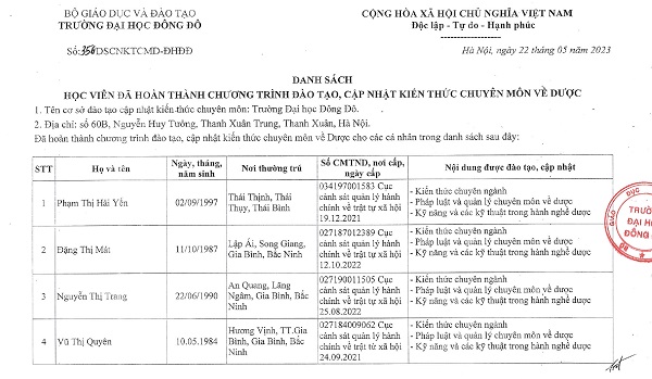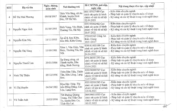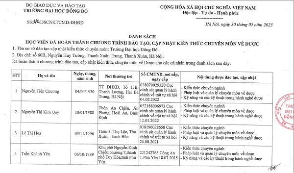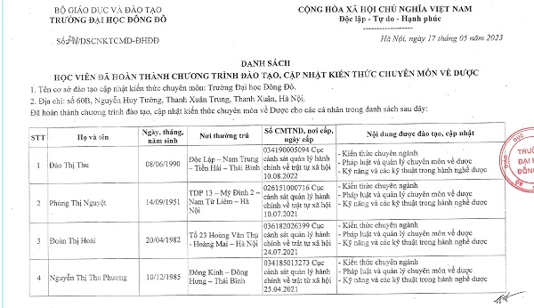Danh sách người đã hoàn thành chương trình đào tạo, cập nhật kiến thức chuyên môn về dược - Tháng 5/2023