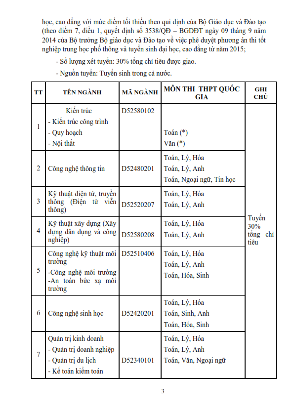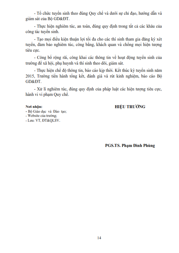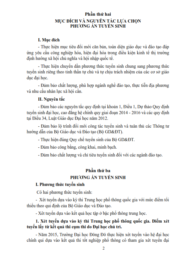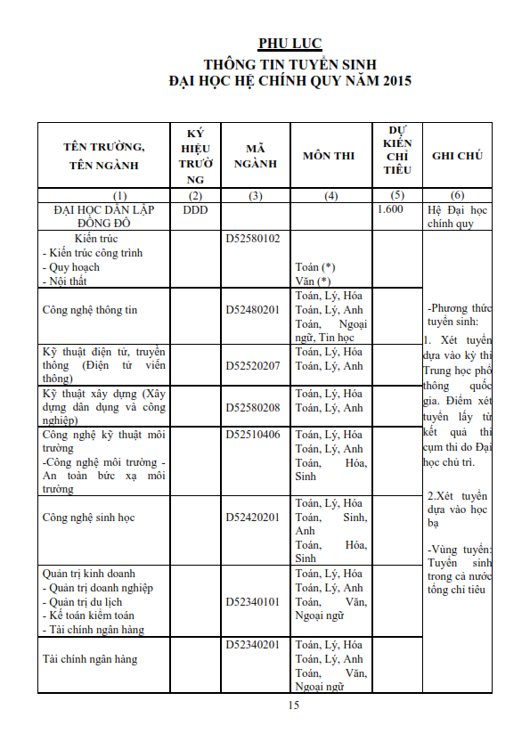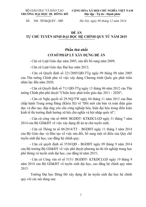 Đề án tự chủ tuyển sinh đại học hệ chính quy năm 2015