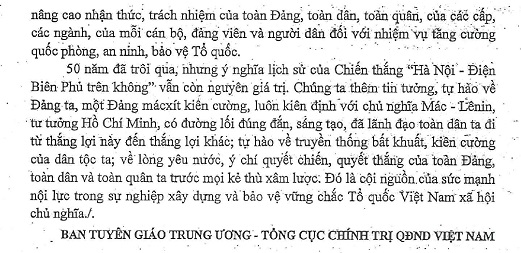 Đề cương Tuyên truyền kỷ niệm 50 năm chiến thắng "Hà Nội - Điện Biên Phủ trên không" (12/1972 - 12/2022)