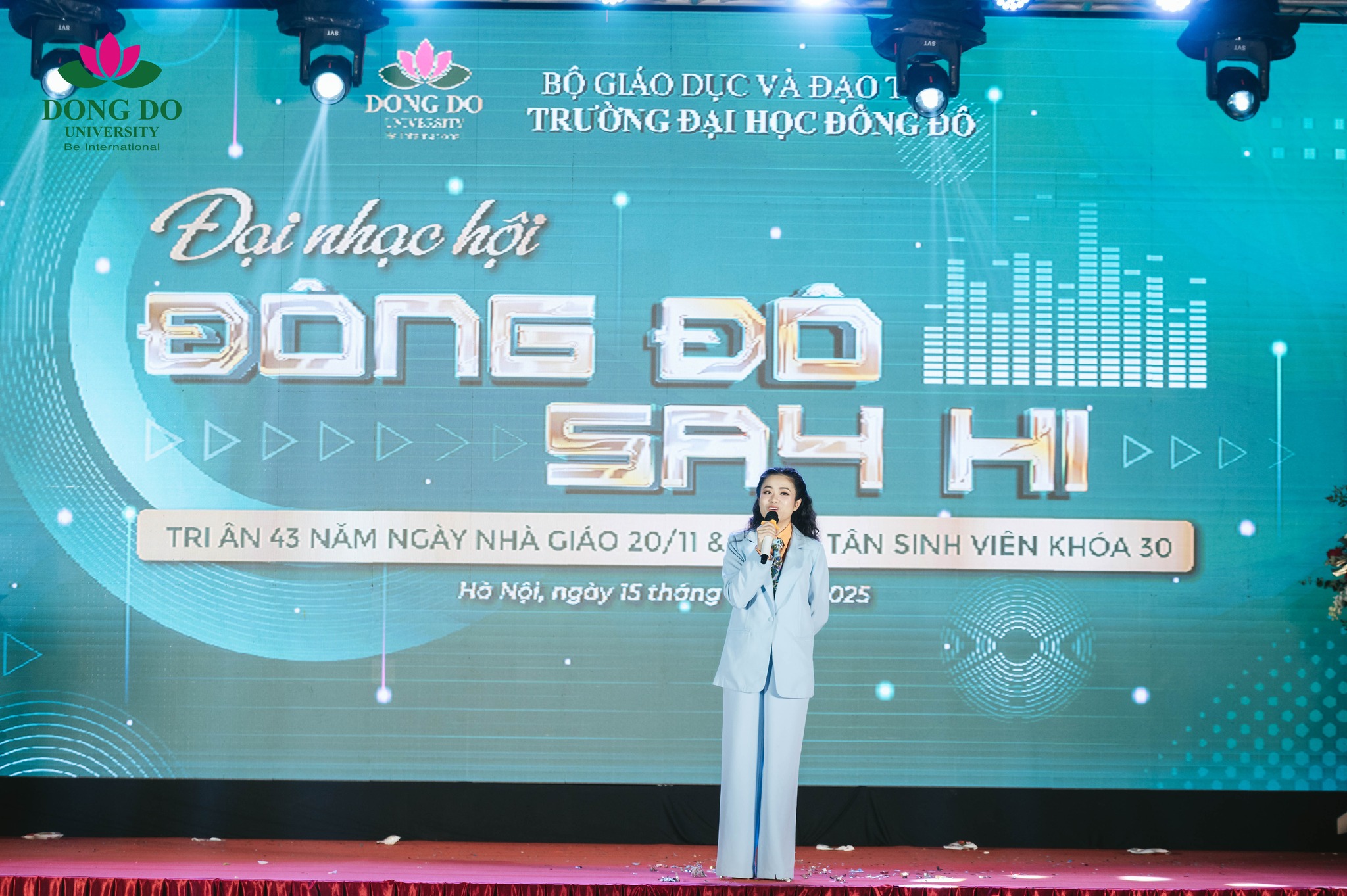Tối ngày 15/11/2025, tại Sân khấu lớn Trường Đại học Đông Đô, đêm Đại nhạc hội Brilliant Path đã diễn ra trong không khí trang trọng nhưng không kém phần sôi động. Đây là hoạt động điểm nhấn nằm trong chuỗi chương trình chào mừng Ngày Nhà giáo Việt Nam 20/11 – dịp đặc biệt để sinh viên gửi trọn tấm lòng tri ân đến các thầy cô, những người đã dành trọn tâm huyết cho sự nghiệp “trồng người”.