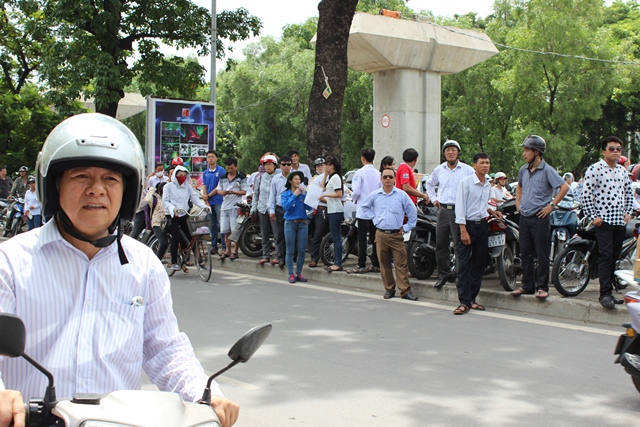 Buổi thi Hóa và Tiếng Anh sáng nay kéo dài 90 phút theo hình thức trắc nghiệm nên nhiều bác phụ huynh đã ở lại đợi ngay tại trường.