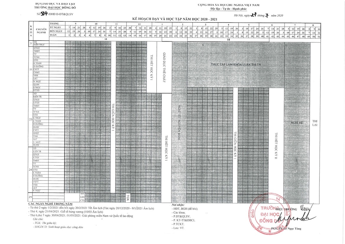 Kế hoạch dạy và học tập năm học 2020 - 2021