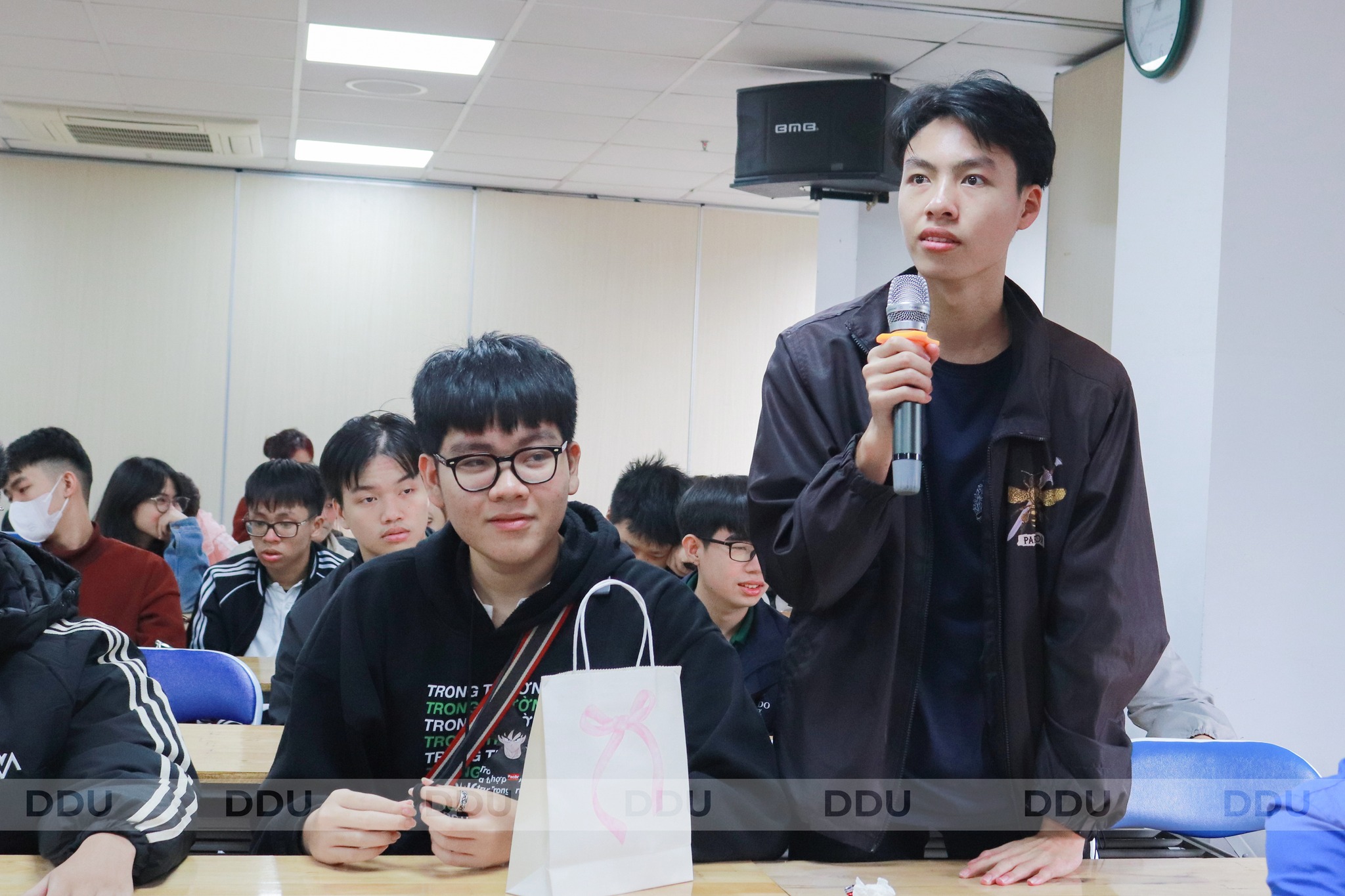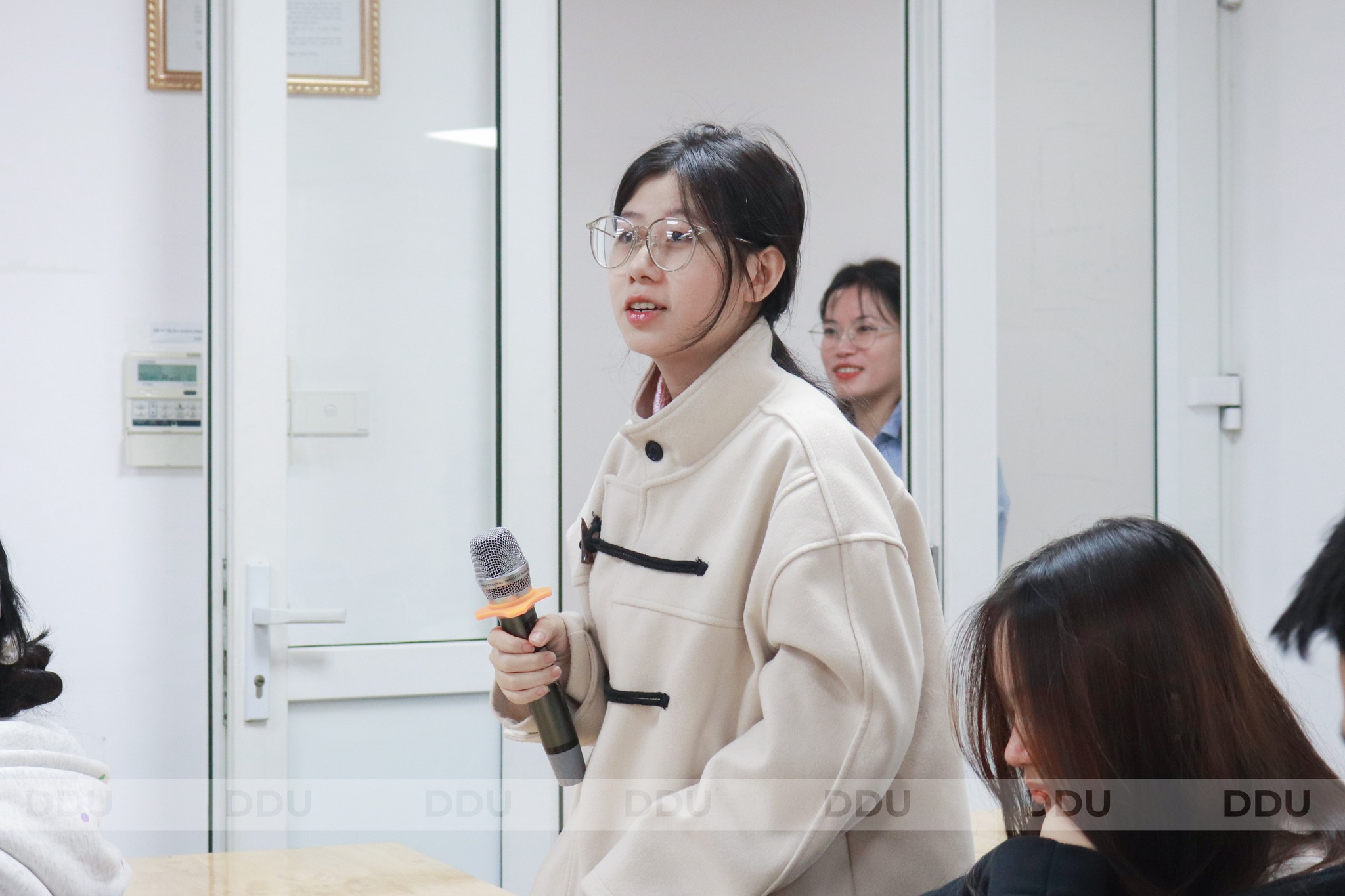 Tại diễn đàn, nhiều câu hỏi thực tế đã được các bạn sinh viên đặt ra xoay quanh chương trình học, hoạt động nghiên cứu khoa học, cũng như cơ hội thực tập – định hướng nghề nghiệp trong tương lai.