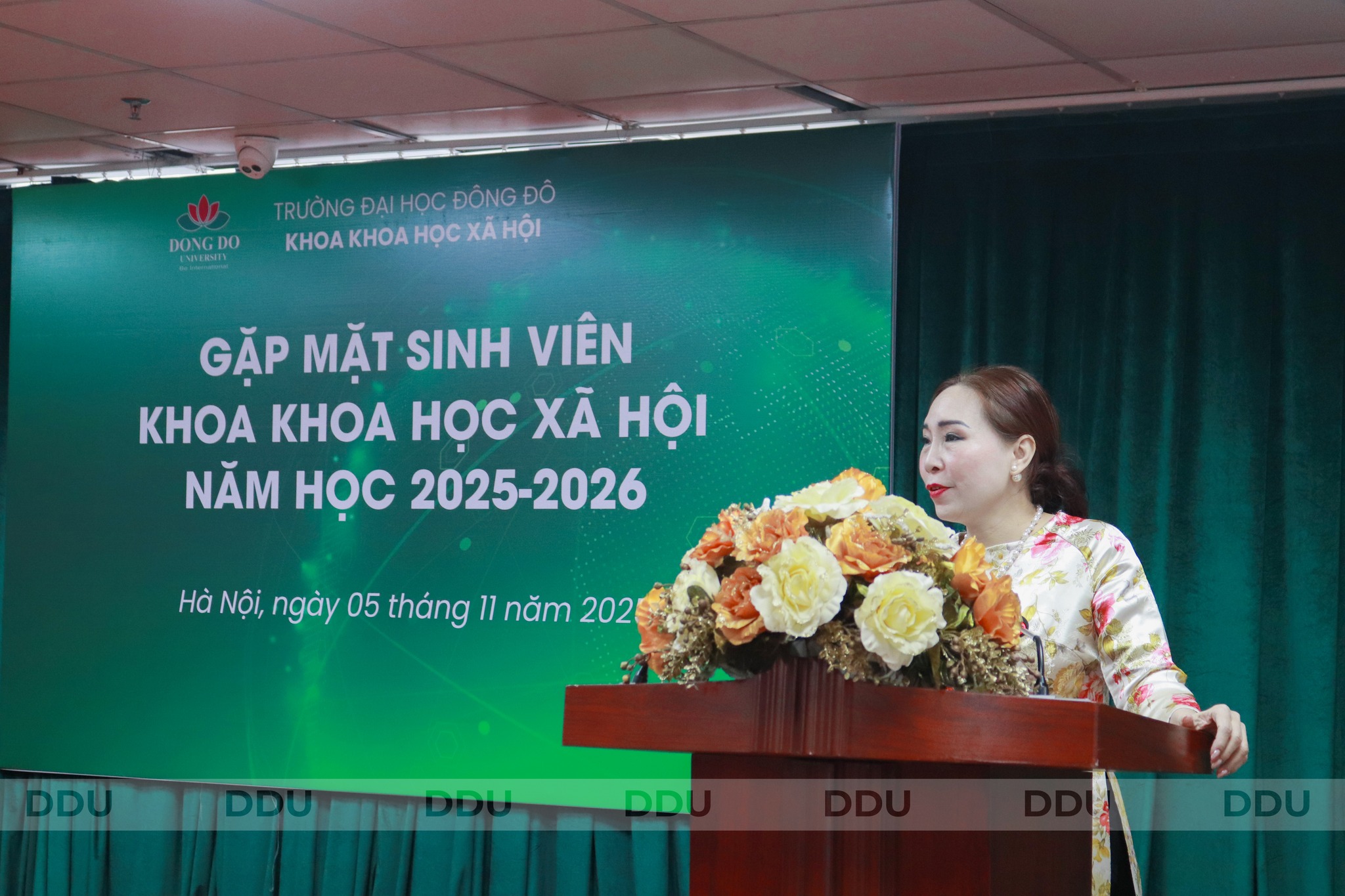 Cô chia sẻ: “Buổi gặp mặt hôm nay không chỉ là lời chào thân thương gửi đến các em sinh viên, mà còn là khởi đầu cho một hành trình học tập và rèn luyện mới dưới mái trường Đông Đô. Mong rằng mỗi sinh viên sẽ luôn giữ trong tim ngọn lửa đam mê tri thức, ý thức trách nhiệm và khát vọng vươn xa, để không chỉ trở thành người học giỏi, mà còn là những công dân tử tế, nhân văn và tự tin hội nhập cùng thời đại.”