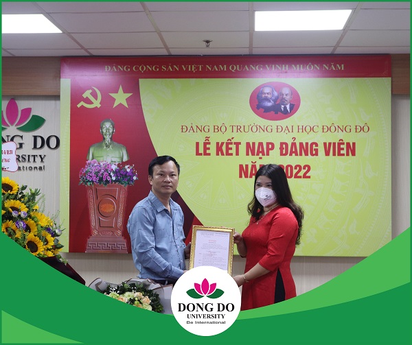 Ngày 12/4/2022, Chi bộ 2 Trường Đại học Đông Đô đã tiến hành Lễ kết nạp Đảng viên mới cho quần chúng ưu tú Trương Thị Lan – Phó trưởng phòng Đào tạo & QLSV. Đến dự buổi lễ có đồng chí Phạm Ngọc Đóa – Bí thư Đảng ủy, Chủ tịch Hội đồng trường cùng toàn thể các Đảng viên trong Chi bộ.