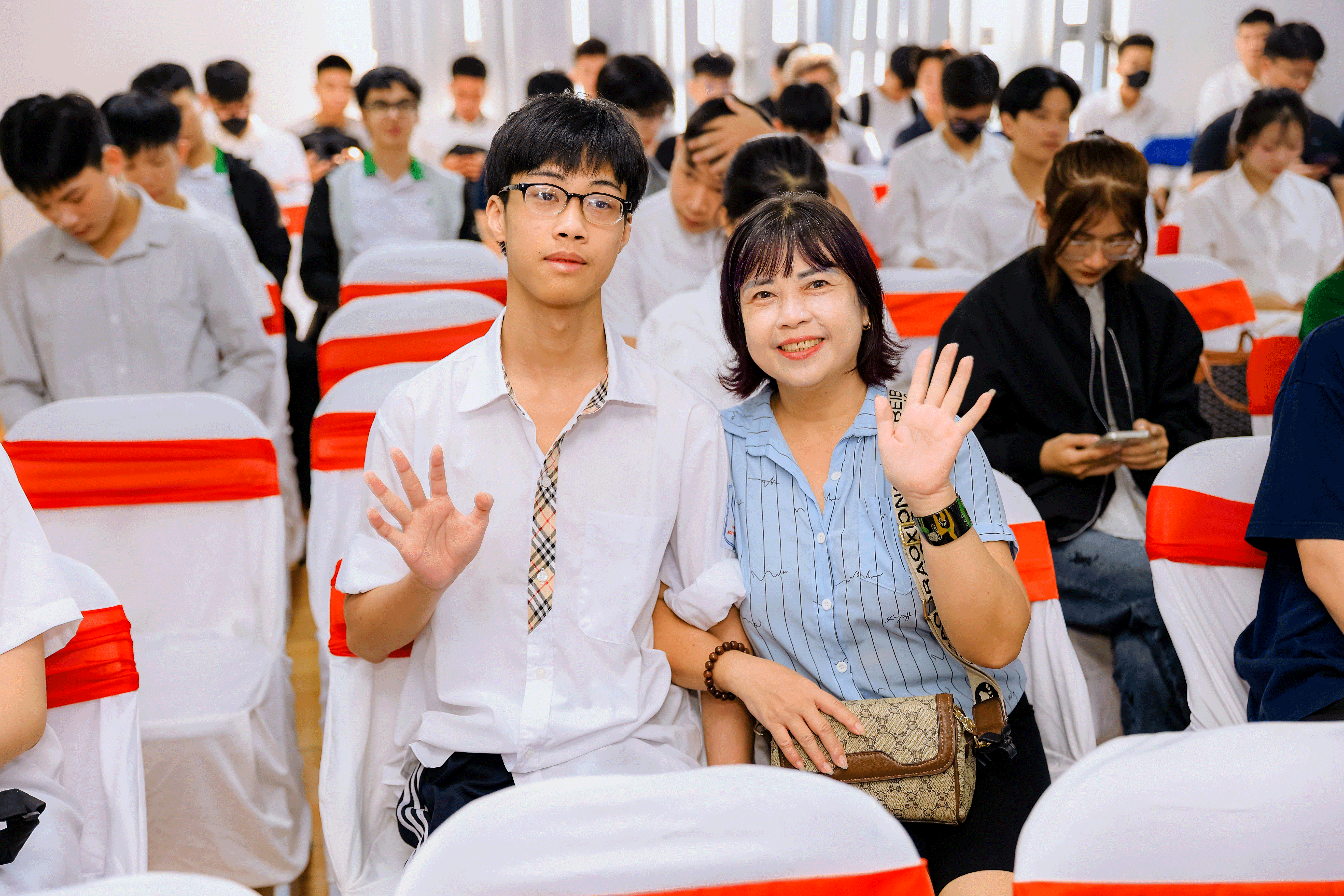 Trong khuôn khổ buổi lễ, Nhà trường đã long trọng tổ chức vinh danh và trao thưởng cho những gương mặt tiêu biểu của Trường Đại học Đông Đô. Đây là các sinh viên xuất sắc trong năm học 2024–2025 cùng những tân sinh viên K30 có điểm đầu vào cao, đại diện cho tinh thần học tập nghiêm túc, ý chí nỗ lực và khát vọng vươn lên không ngừng. Tổng cộng, 40 sinh viên ưu tú đã được gọi tên trên bục vinh danh, nhận những phần thưởng đầy ý nghĩa từ Nhà trường. Phần thưởng không chỉ là sự khích lệ, ghi nhận thành tích học tập, nghiên cứu và rèn luyện, mà còn là nguồn động viên to lớn, tiếp thêm động lực để các em tiếp tục cố gắng và tỏa sáng trong chặng đường sắp tới.