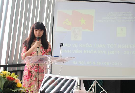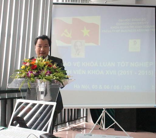 8h ngày 05/06/2015, tại Tòa nhà Đại học Đông Đô- số 4 Tôn Thất Thuyết đã diễn ra Lễ bảo vệ khóa luận tốt nghiệp cho sinh viên khóa 17 khoa QTKD cho 68 sinh viên chuyên ngành Quản trị doanh nghiệp, Kế toán kiểm toán, Tài chính ngân hàng.