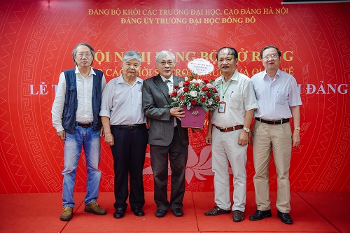Tham dự buổi lễ có đồng chí Phạm Ngọc Đóa - Bí thư Đảng ủy Trường Đại học Đông Đô, Chủ tịch Hội đồng trường; đồng chí PGS,TS. Lê Ngọc Tòng - Phó BT ĐU, Hiệu trưởng nhà trường; các đồng chí trong Đảng bộ Trưòng và Trường Phó các Khoa - Phòng - Ban - Trung tâm - Viện trực thuộc Trường.
