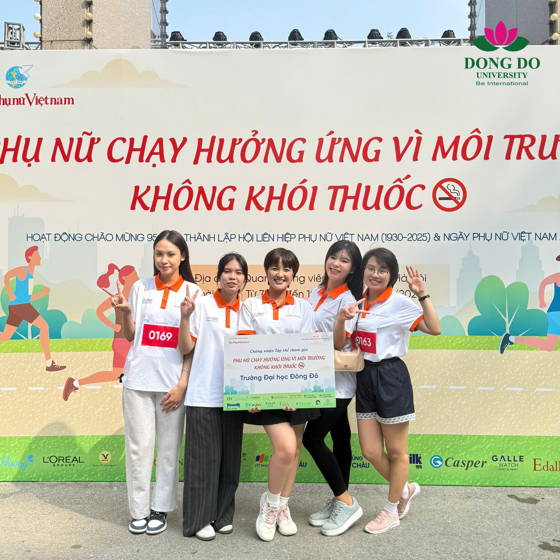 Sáng ngày 19/10/2025, hòa chung không khí sôi nổi của chương trình “Phụ nữ chạy hưởng ứng Vì môi trường không khói thuốc” do Báo Phụ nữ Việt Nam phối hợp cùng Quỹ Phòng, chống tác hại của thuốc lá (Bộ Y tế) tổ chức tại Công viên Thống Nhất (Hà Nội), các nữ cán bộ, giảng viên và sinh viên Trường Đại học Đông Đô đã tích cực tham gia, lan tỏa tinh thần sống khỏe – sống xanh – nói không với thuốc lá.