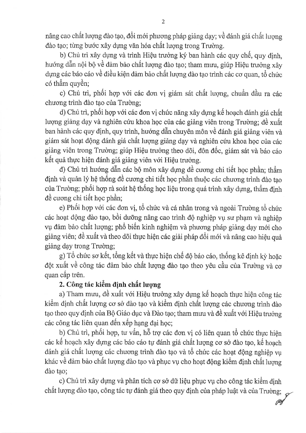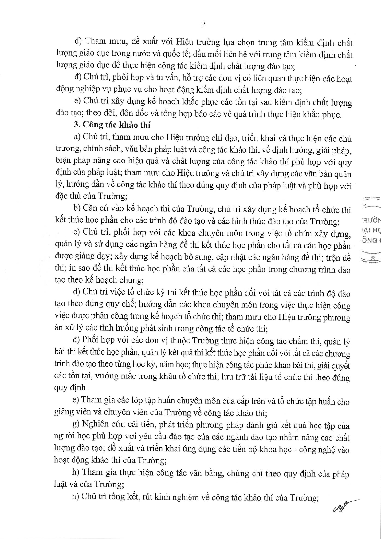 Quyết định ban hành quy định chức năng, nhiệm vụ, quyền hạn và cơ cấu tổ chức của phòng Khảo thí và Đảm bảo chất lượng