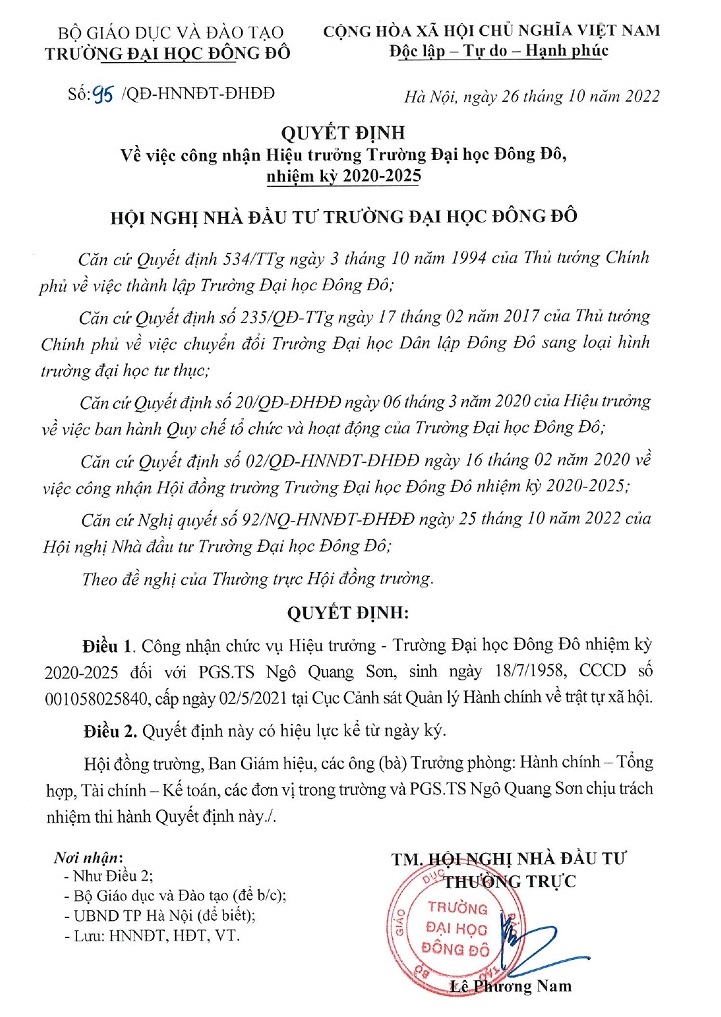Quyết định công nhận Hiệu trưởng nhiệm kỳ 2020 - 2025